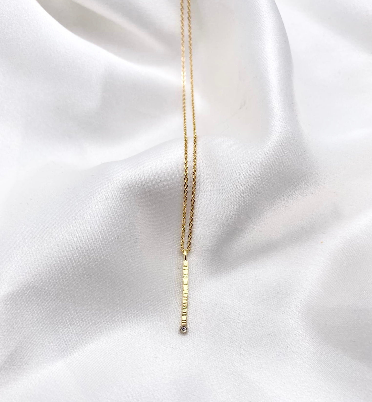 14kt gull hömruð stöng með 1p demanti og 45cm/50cm doublé festi.