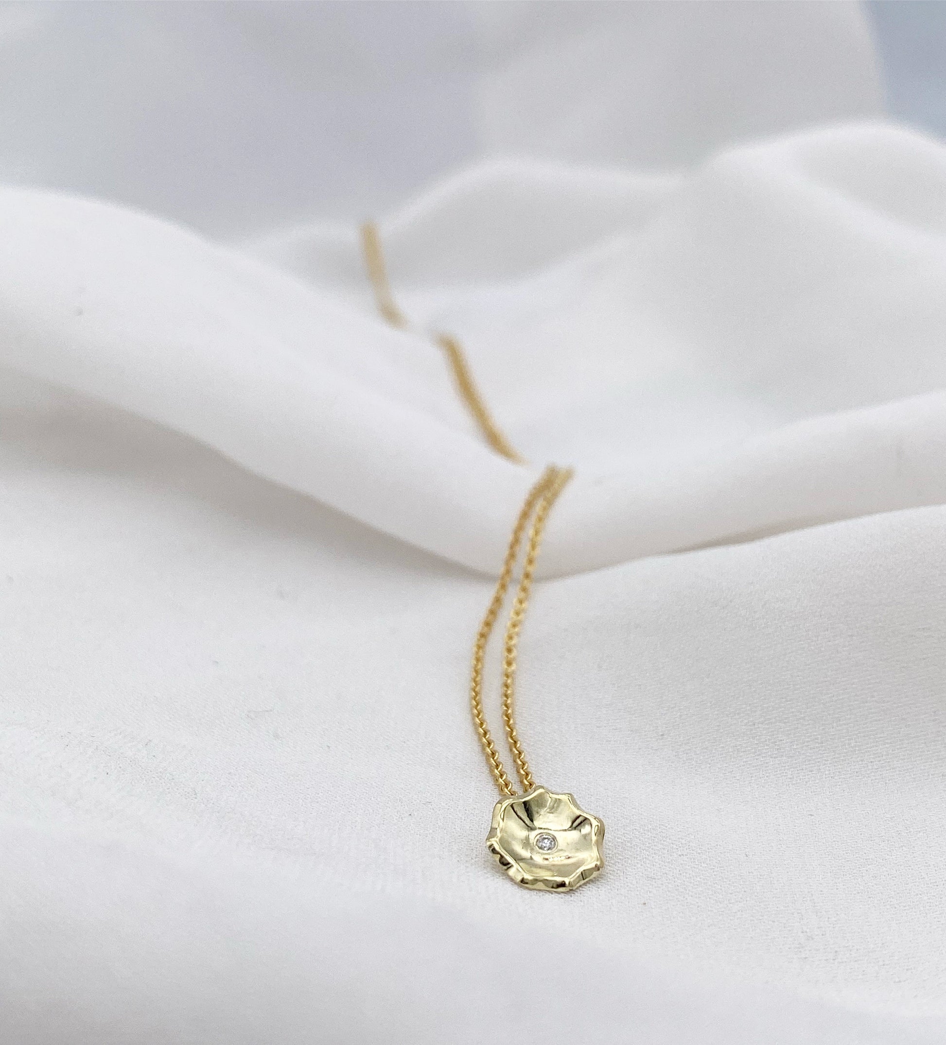 Gullöldumen með 1p demanti í miðjunni. Hálsmenið kemur með 45cm / 50cm húðaðri festi.