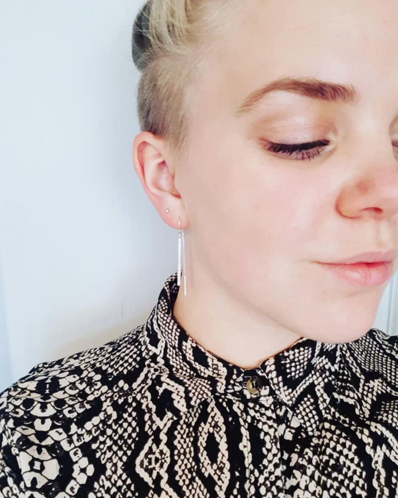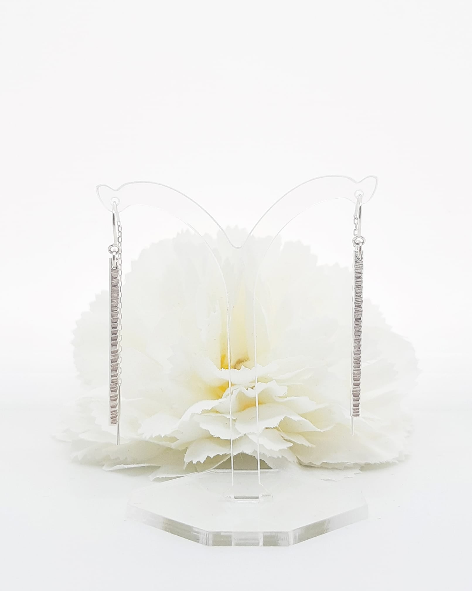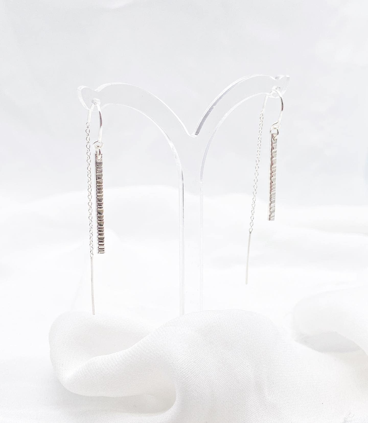 Hangandi lokkar úr hömruðu línunni, lengd hamraða bita um 25mm/35mm. 925‰ Silfur