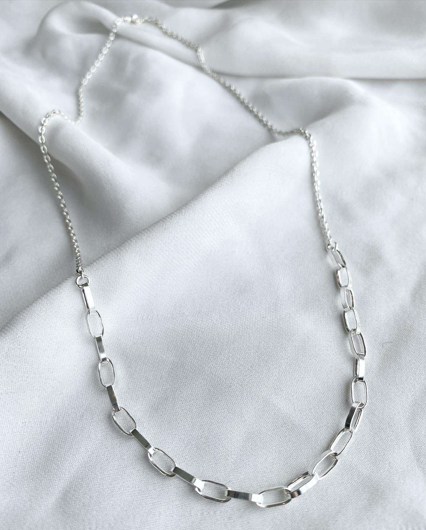 Stílhreint og töff hálsmen úr keðjulínunni. Neðri parturinn er með stærri keðju en efri og er efri parturinn demantslípuð ankerkeðja.