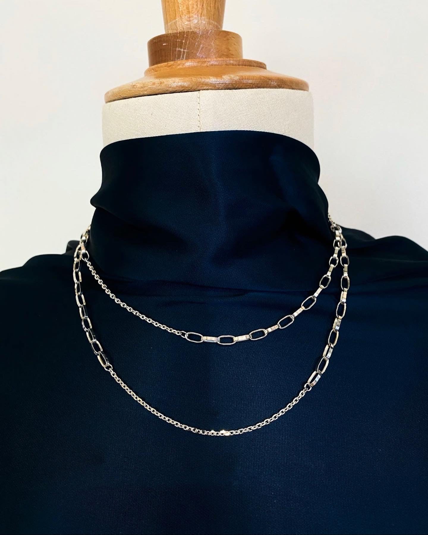 Falleg 90cm keðju hálsmen með tveimur mismunandi keðjutegunum.
