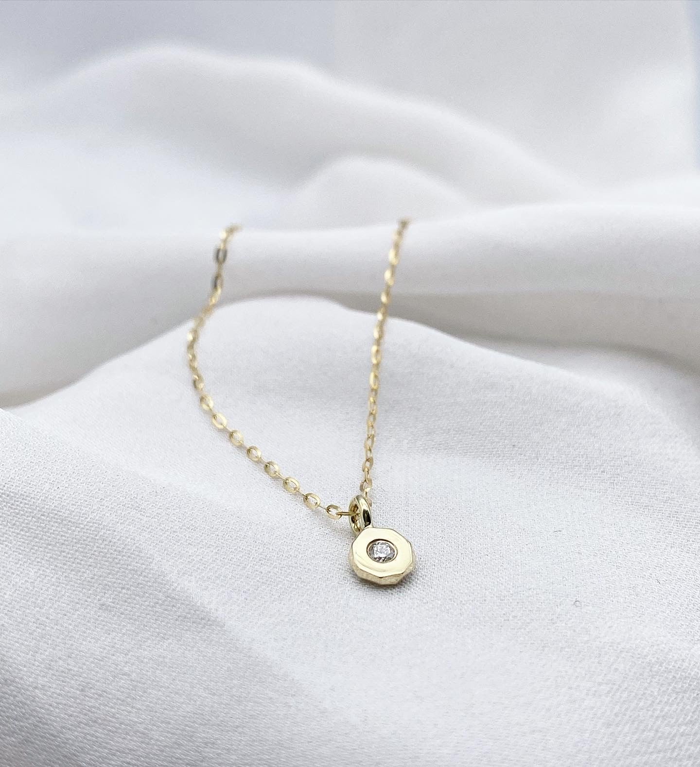 Lítið og sætt gullsteinamen með 0,04ct demanti. Keðjan á myndinni er 14kt gull en ef maður vill húðaða festi á menið þá lækkar verð um 11.000kr.
