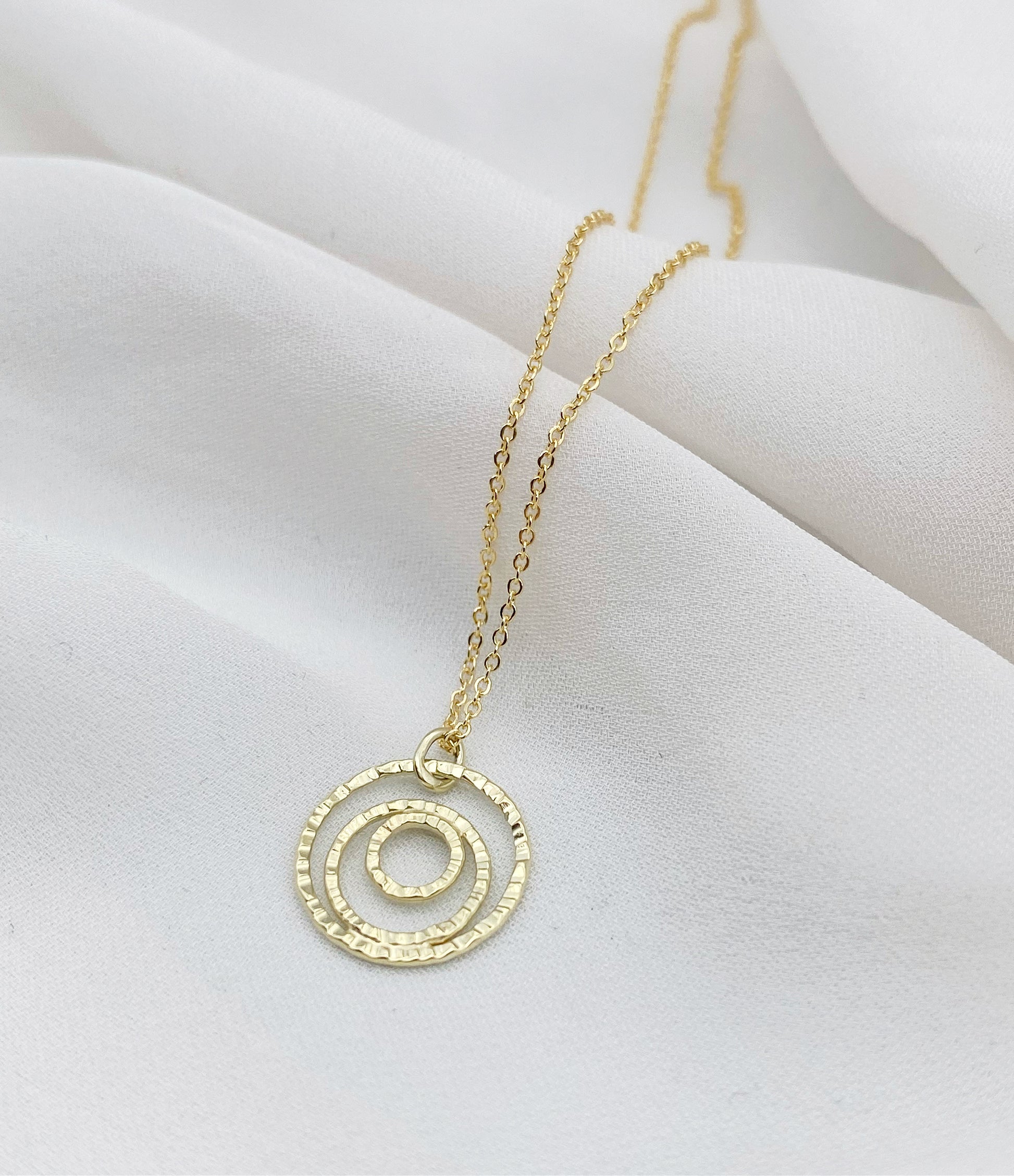 Þrefalt hamrað 14kt gull hálsmen