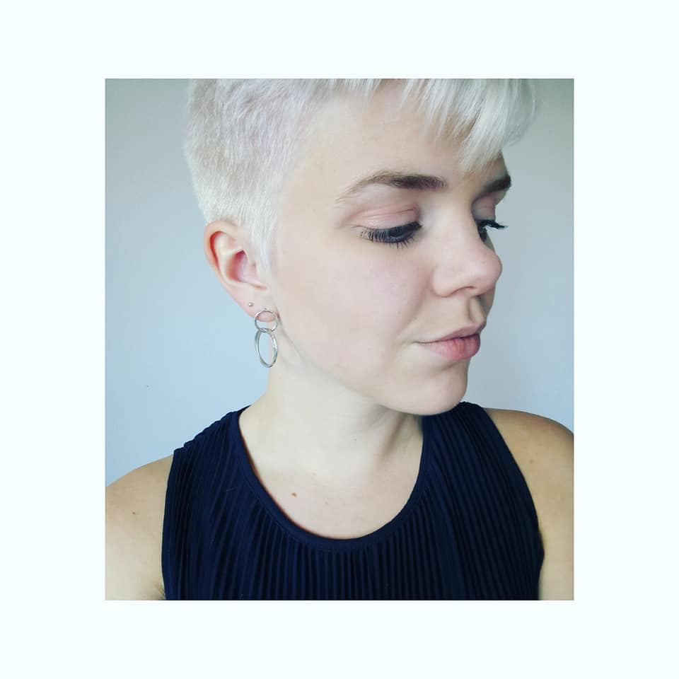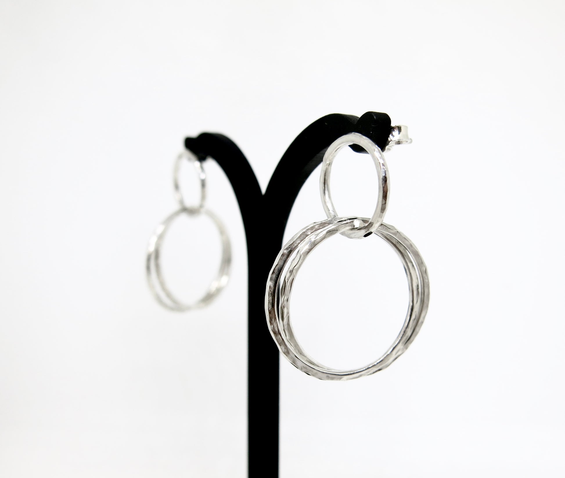 Skemmtilegir silfur eyrnalokkar úr TvisvarxTveir línunni. Þvermálið á efri hring um 15mm og á neðri um 24mm.