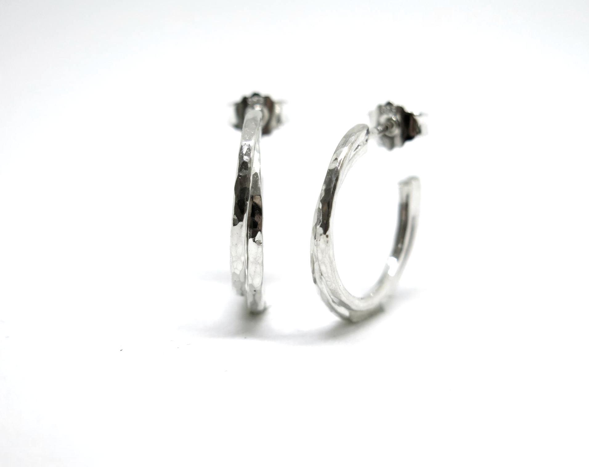 Sígildir silfur eyrnalokkar úr TvisvarxTveir línunni. Þvermálið á lokkunum er um 20mm.
