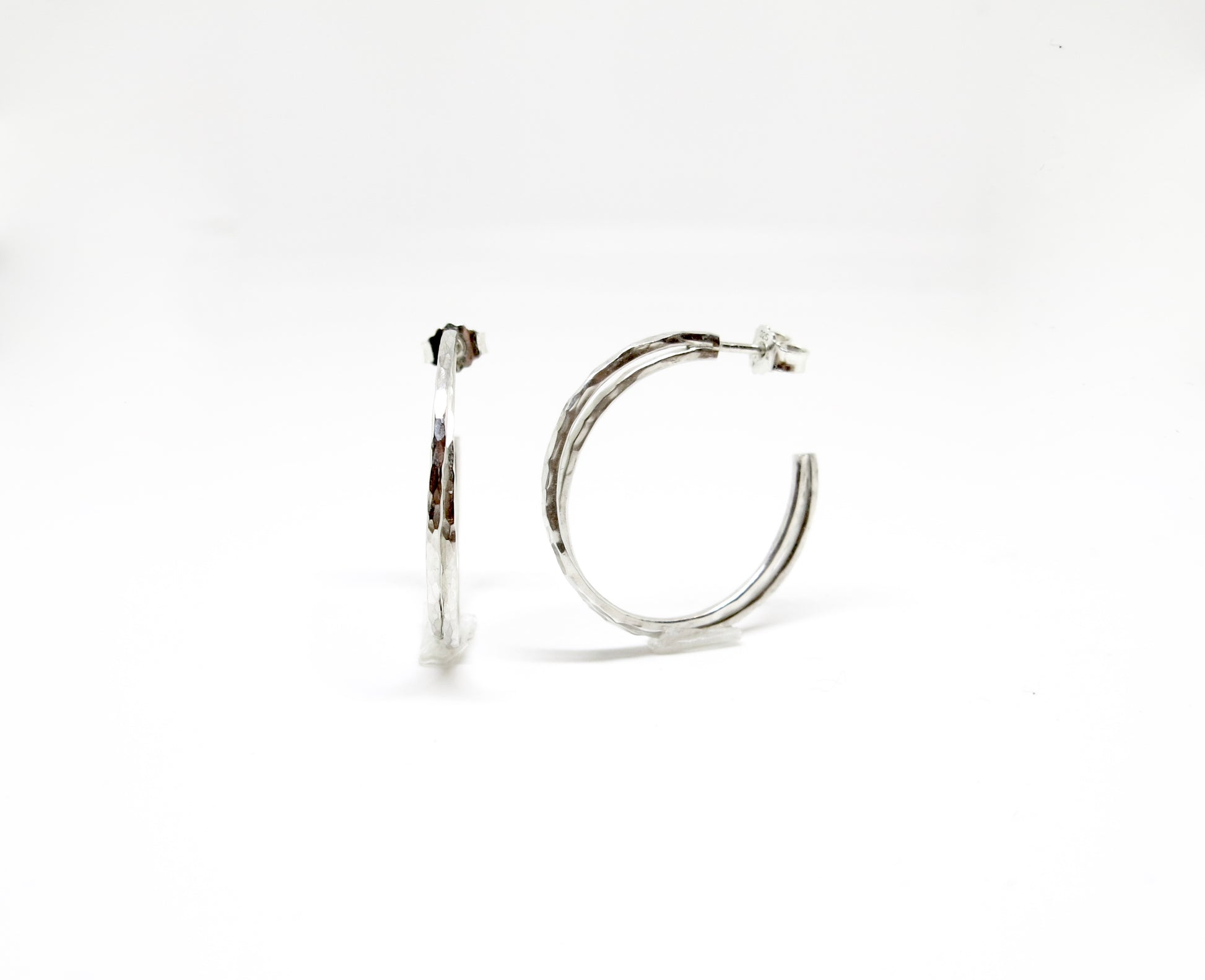 Stærri útgáfan af klassísku hoops eyrnalokkunum úr TvisvarxTveir línunni. Þvermálið á eyrnalokkunum er um 31mm og eru lokkarnir úr 925‰ silfri.