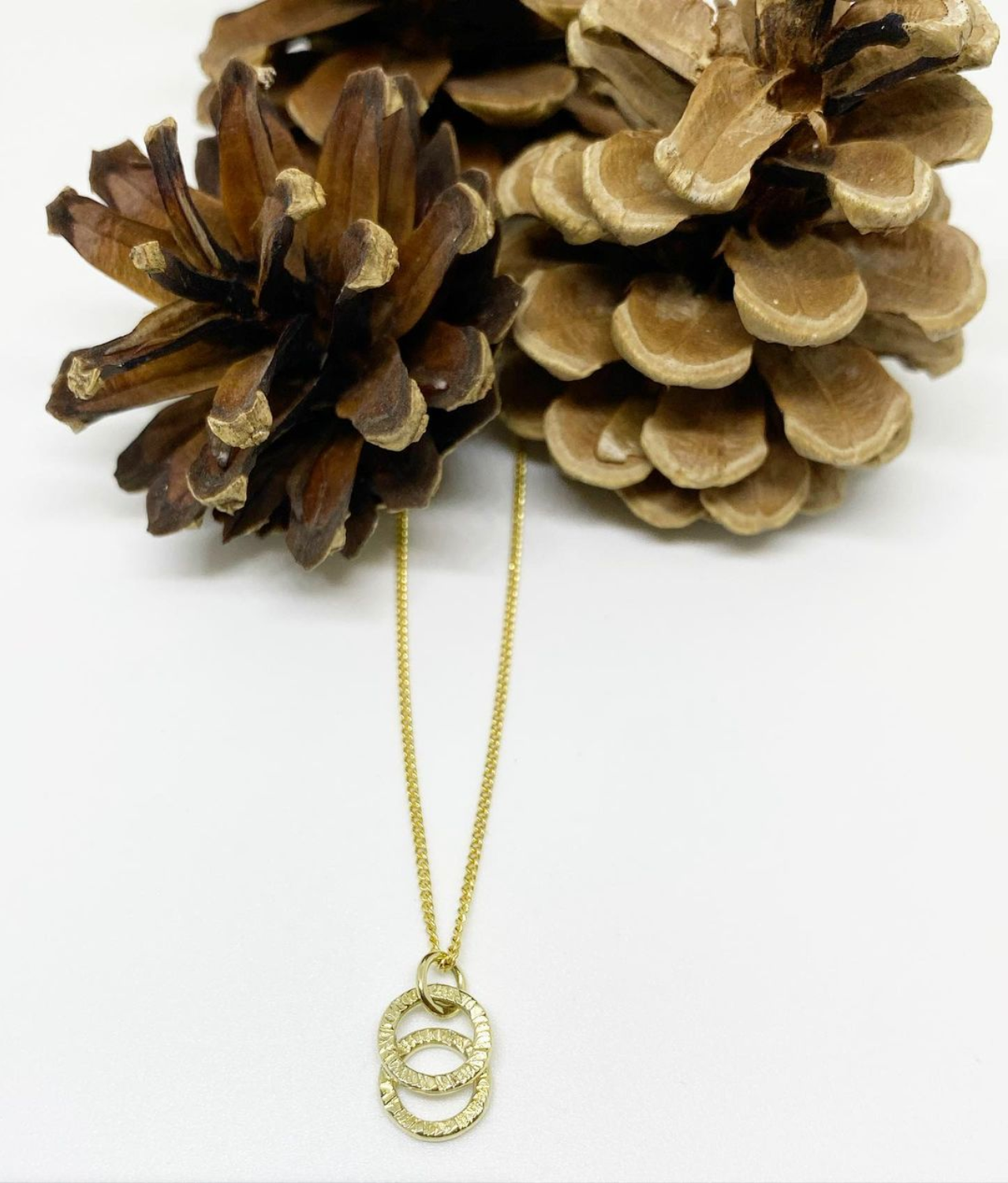 Lítið og sætt tvöfalt hamrað gull hálsmen (14kt).